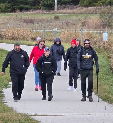 We marched 17.6 miles The Old Plank Trail Head from Plymouth to Kohler and back to raise awareness for the epidemic of veteran suicide. In 2022, an average of 17.6 veterans died by suicide every day. The money raised from this event will go into programs in the Sheboygan County area for veterans, active-duty military service members, and reserves.